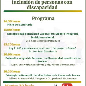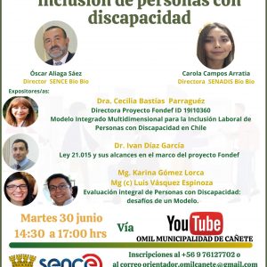 Este martes, 30 de junio, se llevará a cabo el Seminario online “Intermediación laboral para la inclusión de personas con discapacidad”, donde participará la docente de Departamento de Trabajo Social Dra. Cecilia Bastías Parraguéz.